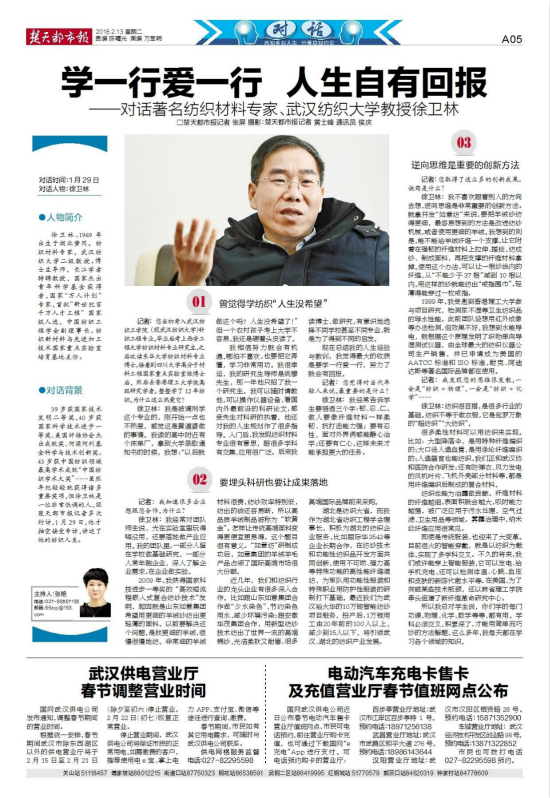 39岁获国家技术发明二等奖,40岁获国家科学技术进步一等奖、美国纤维协会杰出成就奖、何梁何利基金科学与技术创新奖,43岁获中国纺织领域最高学术成就“中国纺织学术大奖”……虽然年纪轻轻就获得诸多重要奖项,但徐卫林是一位非常低调的人,经楚天都市报记者多次约访,1月29日,他才抽空接受专访,讲述了他的纺织人生。